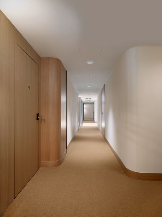 Wandverkleidung Korridor, Hotelzimmer; Deckenrosetten, Nachttische, Beistell- und Schreibtische, Wandspiegel, Ablagen. Skylounge-Bar 8.OG; WC-Trennwand mit gestemmten Türen, Türen, Fensterfutter, Garderobe